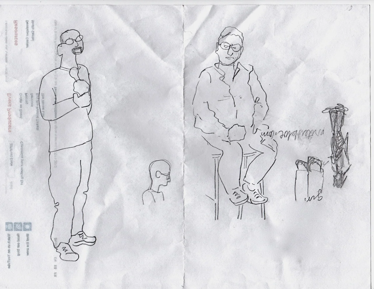 About interpreting the meaning of his writing, he likes the readers to provide their answers. They have the answers, I don’t. He said. He loves that reading provokes the question “what does that mean?” making it a communication process. (The note men don’t get a chance to ask here…is my own comment to Mari, but that didn’t hold for long, everyone got a chance).
