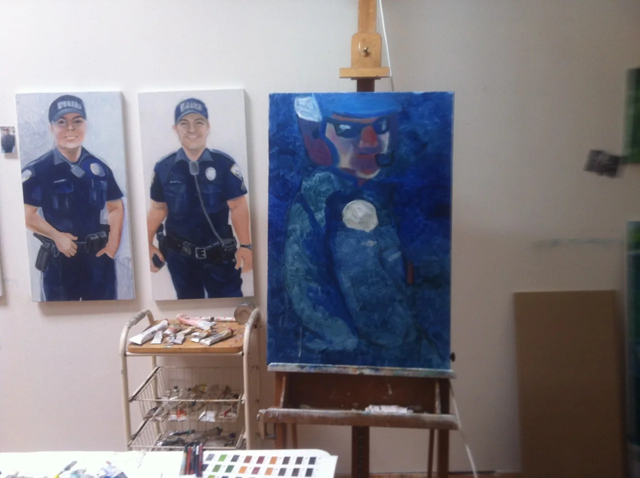 another sunday morning. promenade with Kate. then studio and art store. then stop at Grove to buy a chicken. all the county fairs couldnt keep up with this. animals, face painting pumpkin carving (use electric drill). Kate and I take pictures of each other in my studio.