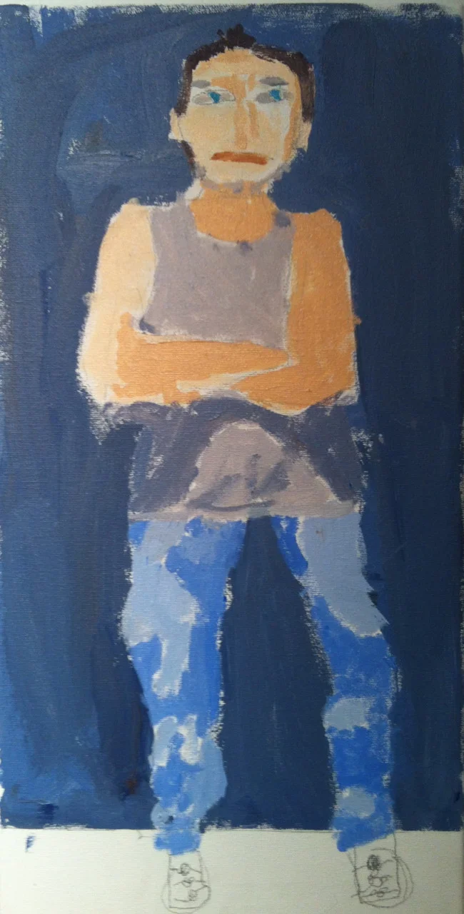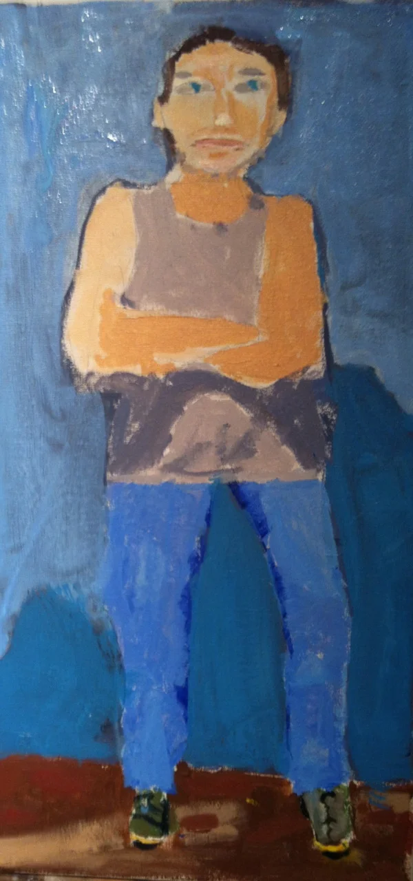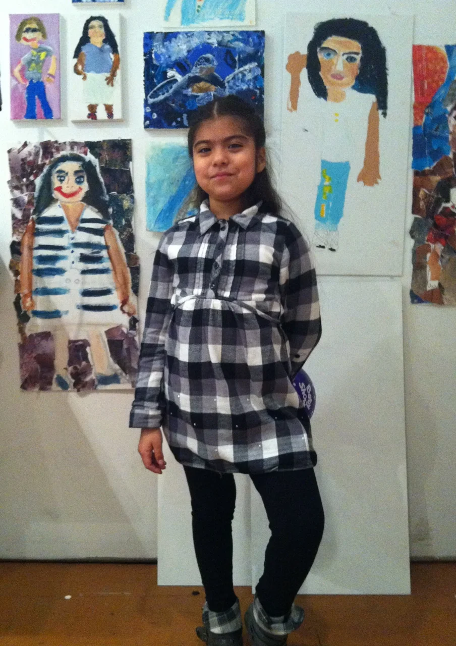 My student at work: I have her take a photo of her dad (in my studio), then in a few hour sessions here is the finished painting. (10 x 20 “). Though we get about 40 minutes of work done each time, we have to break for silliness. she is talented but she is 7!